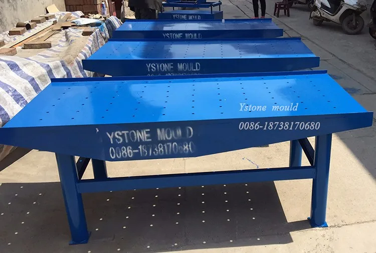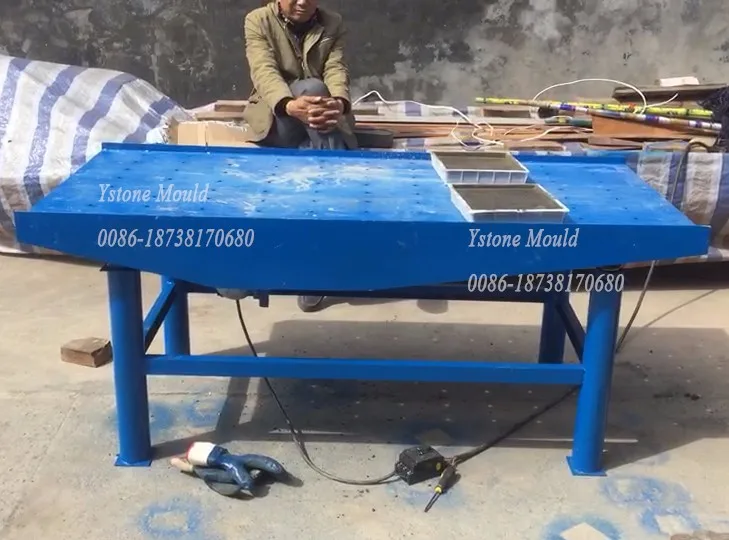 This vibrating table is specially designed for casting concrete pavers/ tiles, artificial stone, curbstone and manhole cover. It vibrate the moulds frequently, making the moulds moving forward and release the air bubbles in the cement, thus it produce the concrete pavers with strong quality. Also it is easy operate and maintenance, suitable for various types concrete pavers.