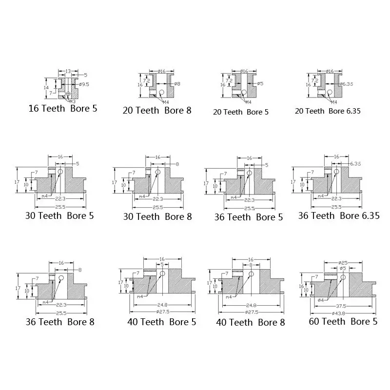 The GT2 pulley with 20 teeth or grooves is one of the best choices for 3d printer construction. Compared with the T2.5 or MXL timing pulley, the GT2 pulley tooth