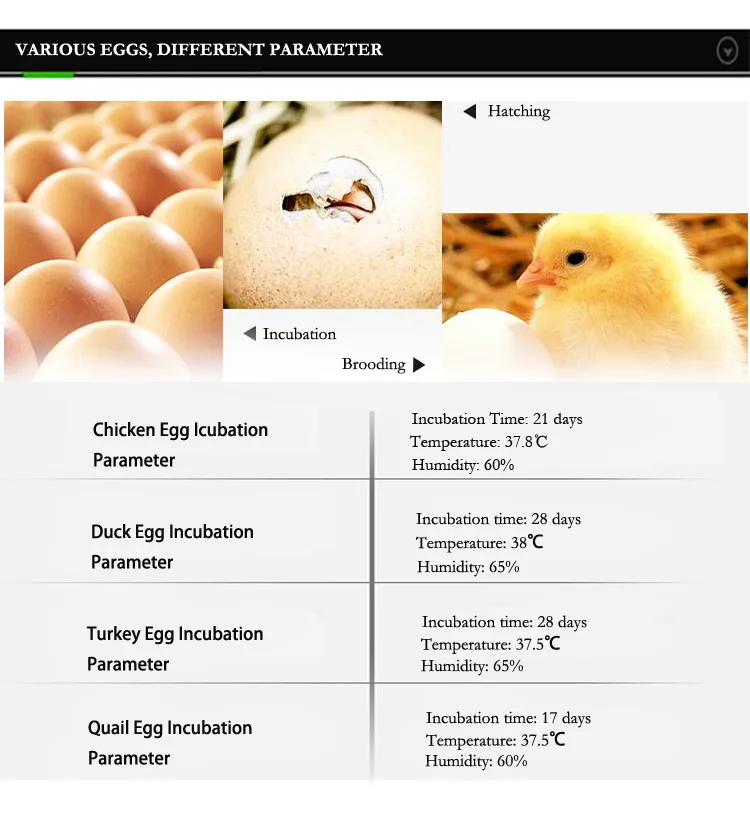 1. Automatic turning system tilting the eggs 45° Once per two hour.According your actual request, you can