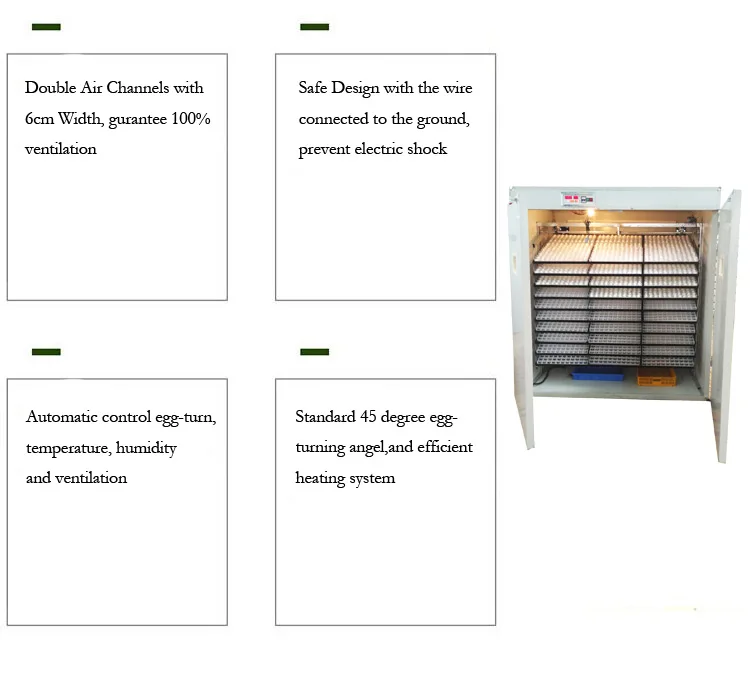 | Packaging Detail: | Electric Powered Capacity 5000 Eggs Incubator Hatcher Machine packed in thick foam, and then packed in plywood; | Warranty: | 3 years; |