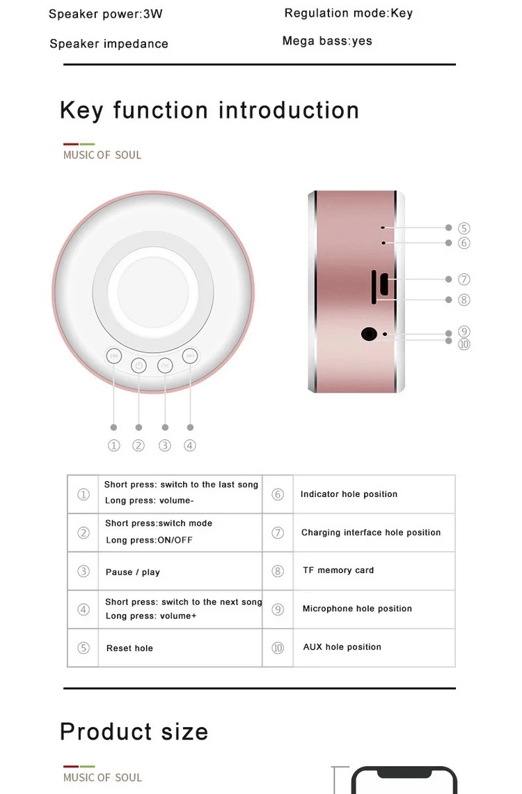 | Battery capacity: | 400mAH; | Package Type: | 1*loudspeaker box 1*specification 1*USB cable; |