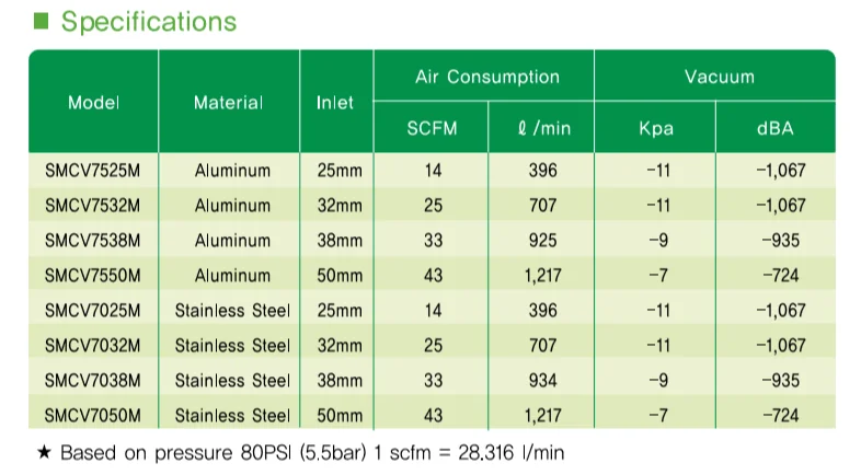Seyang Vortex Conveyor Vac is a product that can transfer parts strongly and quickly within the range of compressed air (3~9.9Kgf/cm2). No electricity or moving parts are required. It is suitable for transferring parts in indusstrial sites. In addition, it can transfer a large quantity of parts because its internal duct is large compressed to the outer diameter of the apprerance. It is made out of aluminum or stainless steel and four types are arranged.