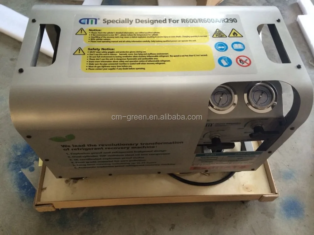 CMEP-OL oil free explosion proof refrigerant recovery machine is specially designed for light hydorcarbon refrigerants,such as R32,R600A and R290,etc.It's suitable for the service of household A/C,fridge and oil extraction.
