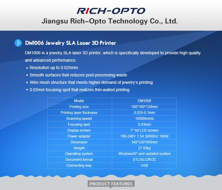 DM1006 is a jewelry SLA laser 3D printer, which is specifically developed to provide high quality and advanced performance.