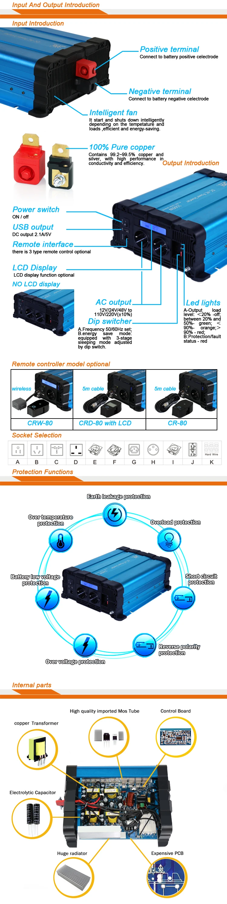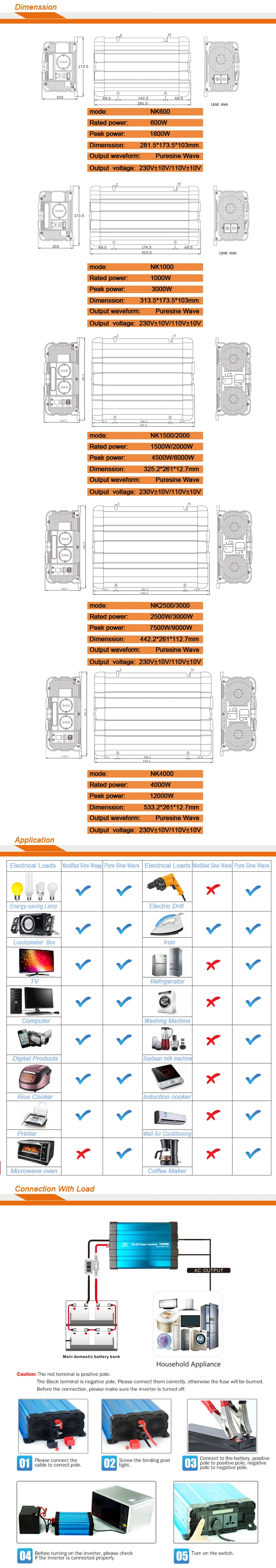 | wave form: | pure sine wave; | Peaking power: | 8000W; |