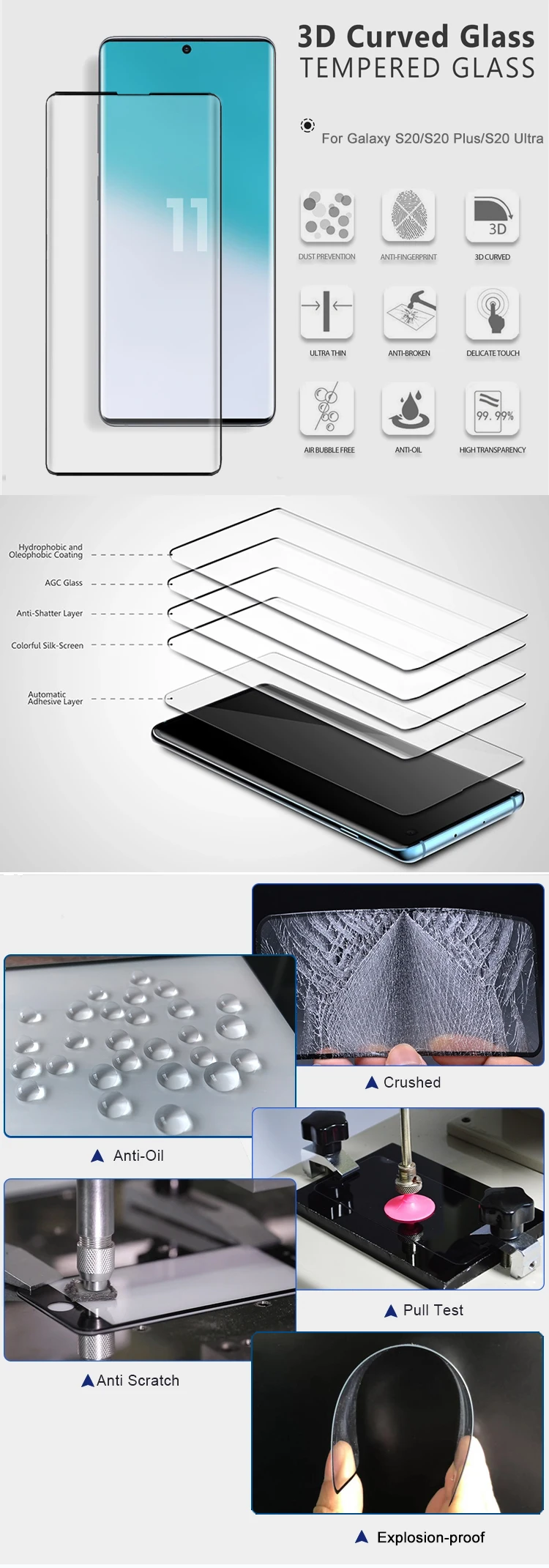 | 1 | Model | 3D Curved Tempered glass screen protector For Galaxy S20/S20 Plus |