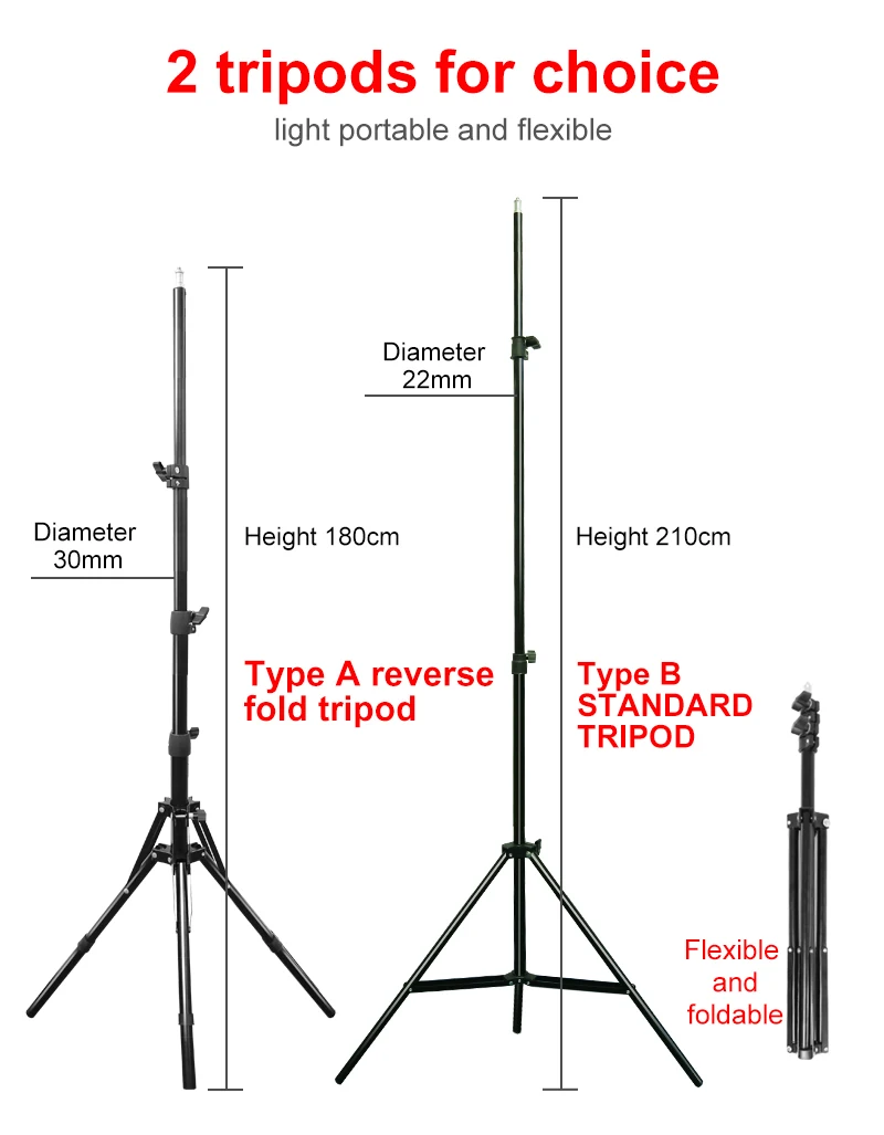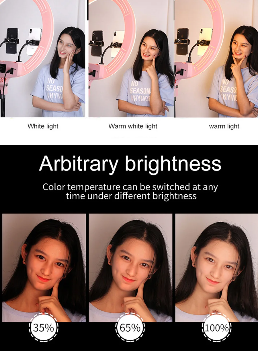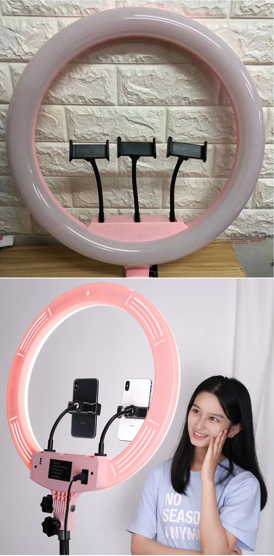 The RK44 is the popular ring light with tripod stand. It's powered by USB. LED with 3 light color mode(white,warm yellow and warm white).
