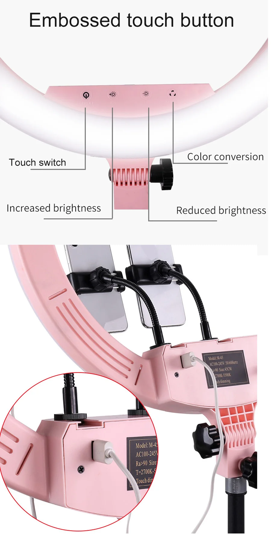 LCOSE RK40 LED Ring Light 18 Inch Ringlight Photography Ring Lamp Makeup LED with Stand Hot Shoe for Camera and phone