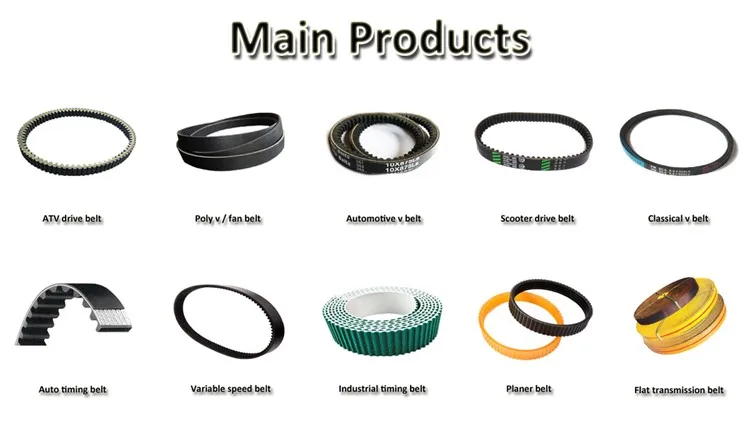 A: Our main products are drive belts for cars, trucks, scooter, ATV, industrial machine, such as: