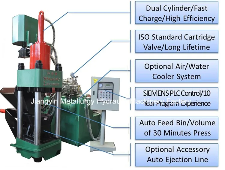 SBJ-series automatic horizontal high speed briquetting press is our factory newly developed horizontal product on the basis of SBJ series.The new circular feeding system saves the pre press and the push block action.Its horizontal structure will reduce the time of press by 20%,and the output of the shift is doubled.