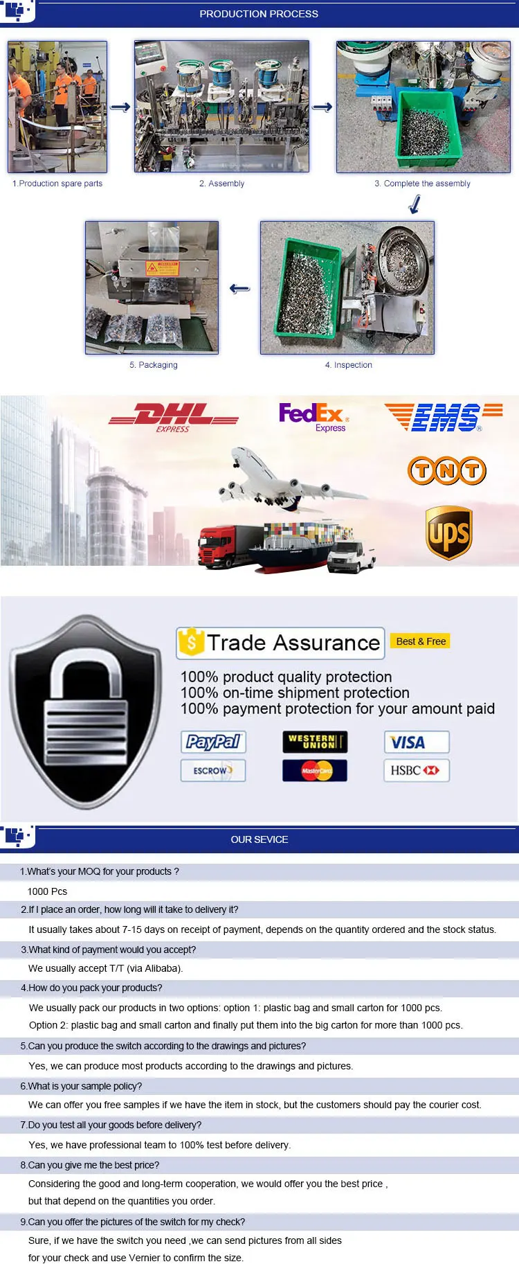 | Packaging Detail: | 2p3t horizontal slide switches in poly-bag and carton box; | Material: | Plastic and metal; |