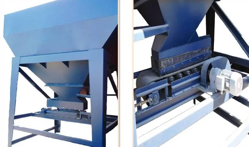 Weighing silo with 60*140*50 cm dimensions made of 5mm steel sheet and equipped with pneumatic discharge hatch.