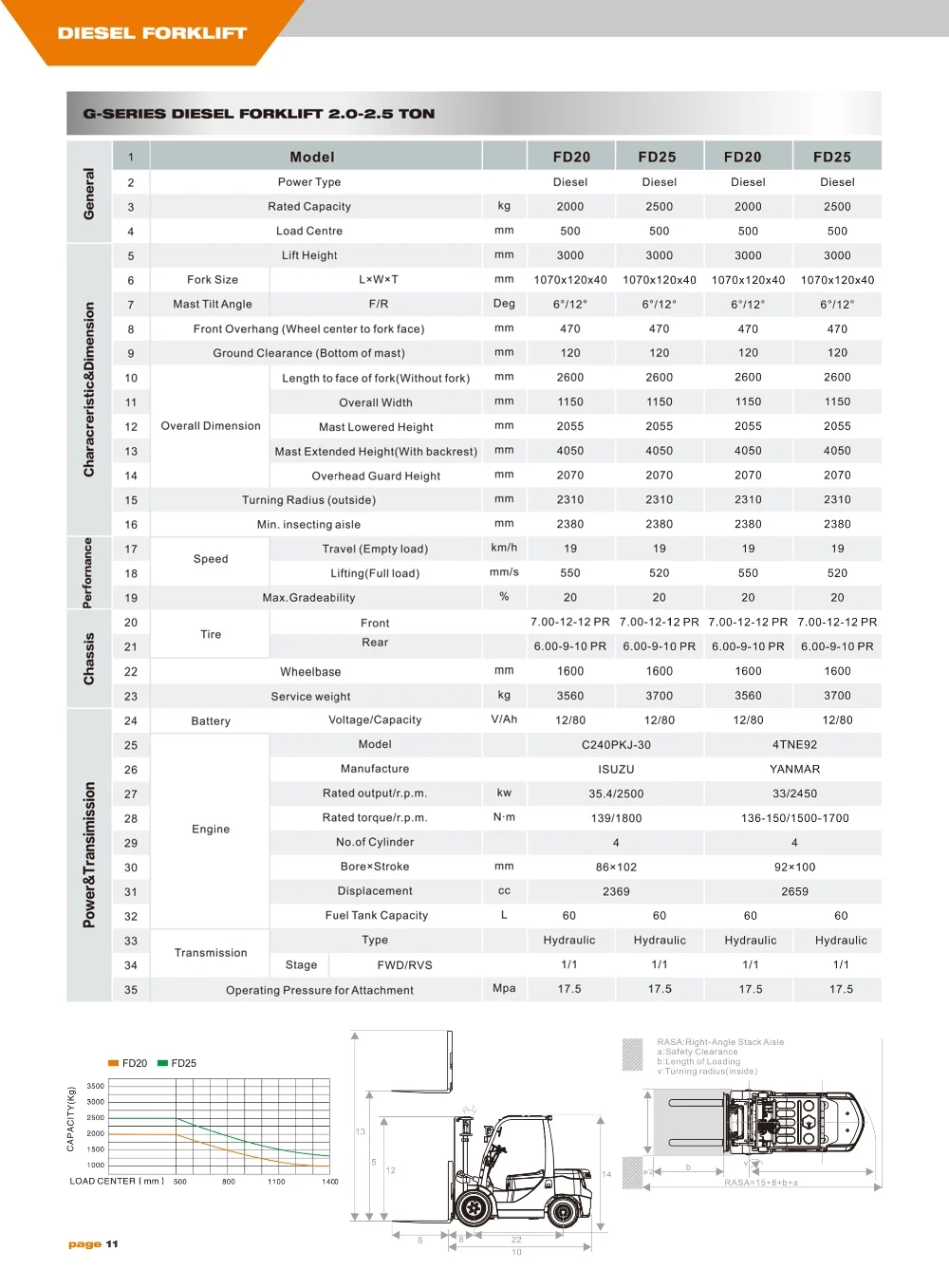 | Key words: | diesel forklift; | Engine: | XinChaiC490/ISUZU C240; |