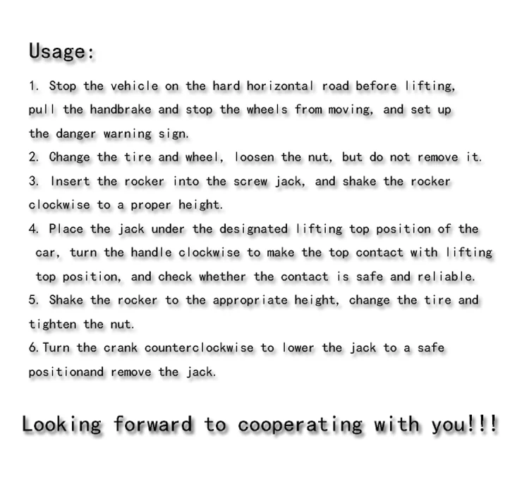 | Package Preview: | https://sc01.alicdn.com/kf/H6d025bd15c0c42afbe3852ef19912c14P.jpg_640x640.jpg; | Product name: | scissor jack; |