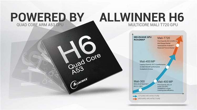 | Hardware | CPU | Allwinner H6, up to 1.5 GHz, Quad core ARM Cort ex-A53 | |||||||