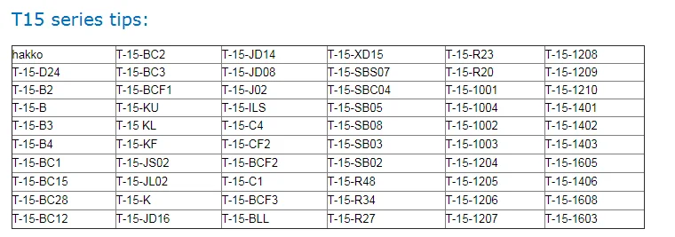 | Body material: | Stainless steel; | Product name: | T15-JS02 Soldering Welding Tips; |