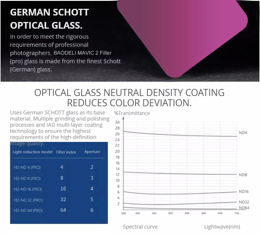 Baodeli lens filter is mainly suitable for DJI Mavic 2 Zoom Drone Accessories.