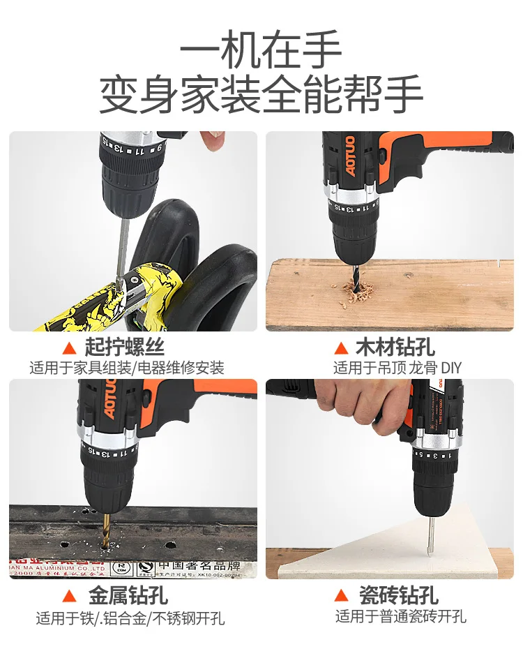 | Product Name: | Lit18V/21V Household Lithium Power Tools Electric Impact Drill; | Keyword: | High Quality Cordless Drill; |