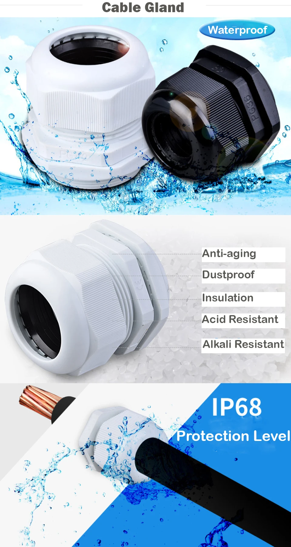 | Product name: | M Lengthen cable gland; | Protection Level: | IP68; |