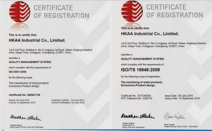 A1:we are TS16949, ISO13485, ISO 9001-2008 certified firm. we have the integrated system for industrial parts quality control. We have IQC (incoming quality control), IPQCS (in process quality control section), FQC (final quality control) and OQC (out-going quality control) to control each process of industrial parts prodution.