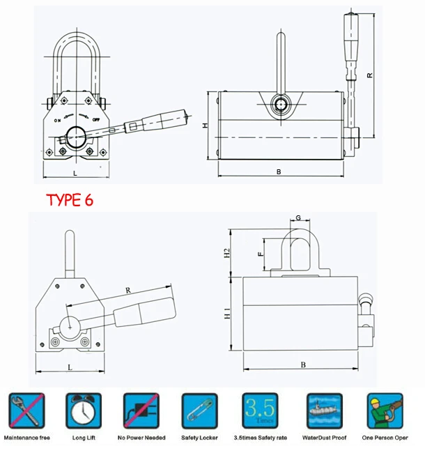0.1 to 10 tons Permanent magnetic lifter without electric