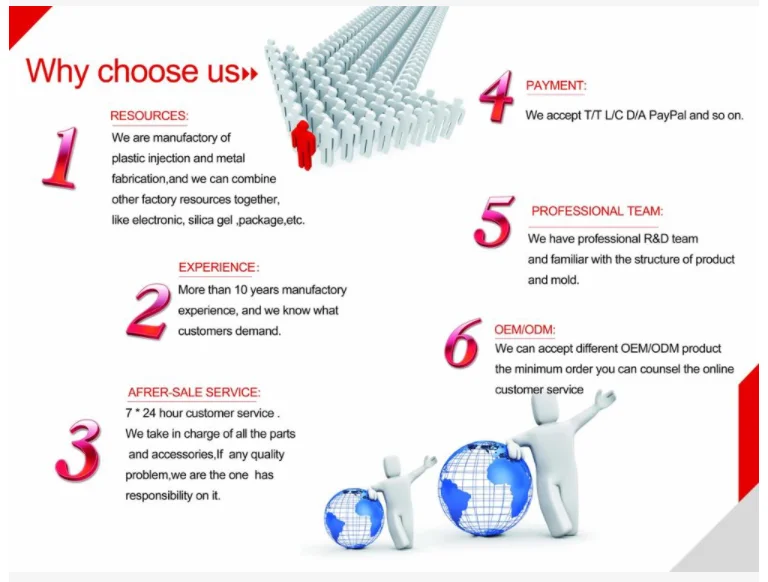 5, We possess professional developing and designing team to control the product design, develop mold, raw main material, production process, inspection, package and deliver. It will bring you high quality service.