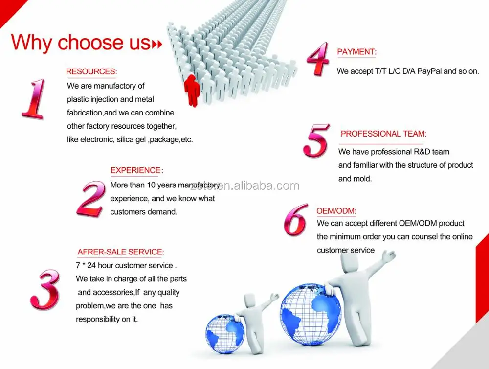 5, We possess professional developing and designing team to control the product design, develop mold, raw main material, production process, inspection, package and deliver. It will bring you high quality service.