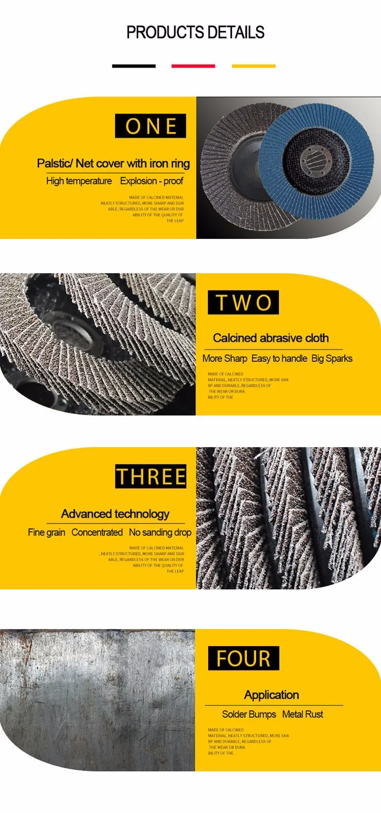 | Disc Type: | FLAP DISCS; | Supply Ability: | 500000 Piece/Pieces per Week Zirconia Abrasive Flap Disc; |