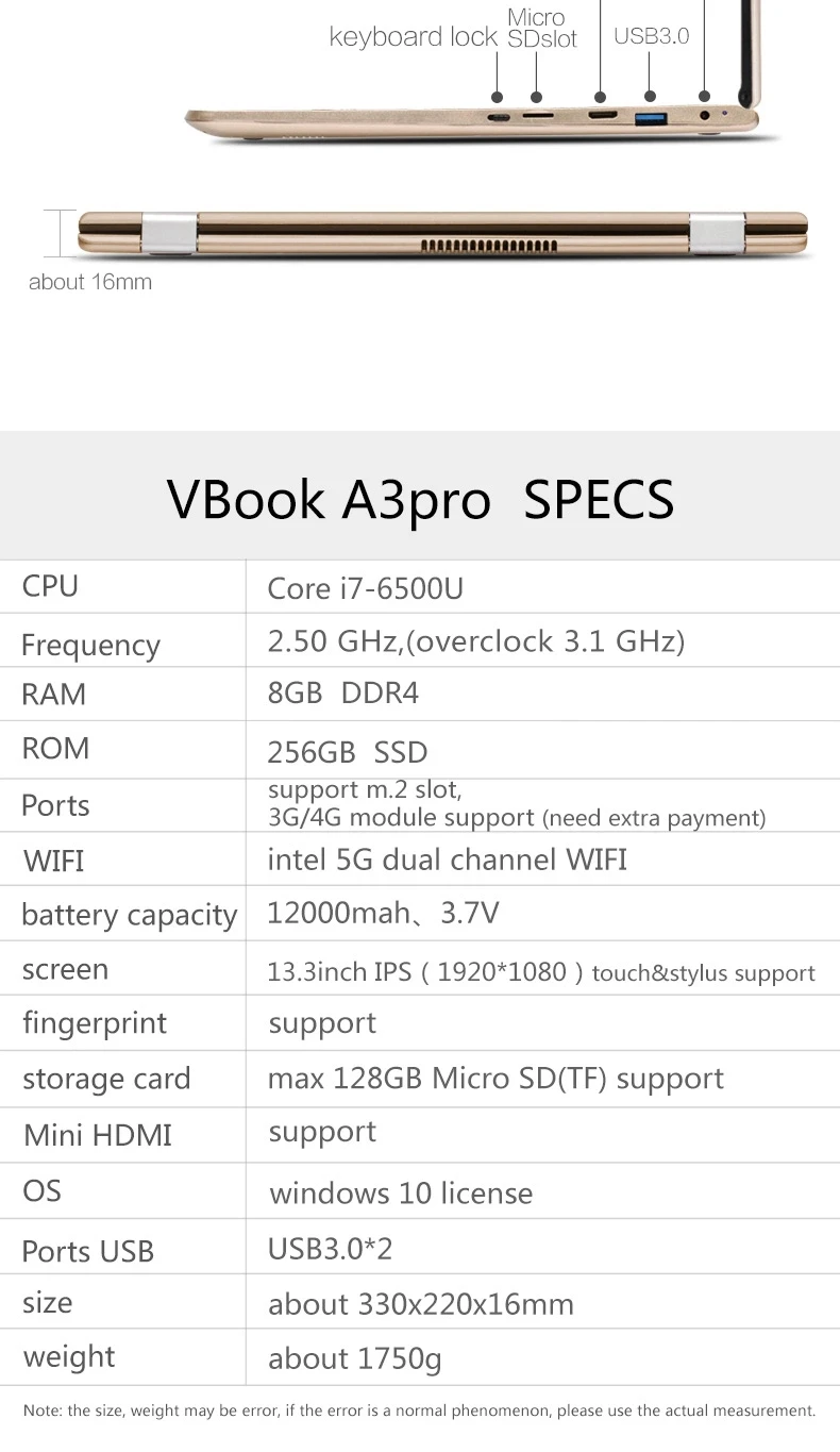 | Processor Type: | Intel Core i7 i7-6500U; | Feature: | 360° over turn; |