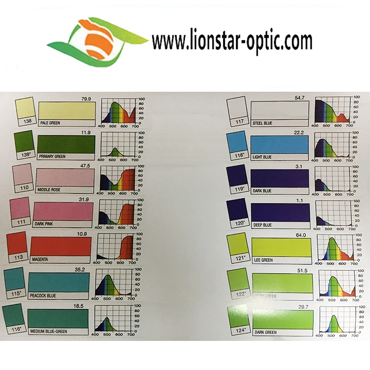 Different Colour Filter film with Wavelength and Spectrum :