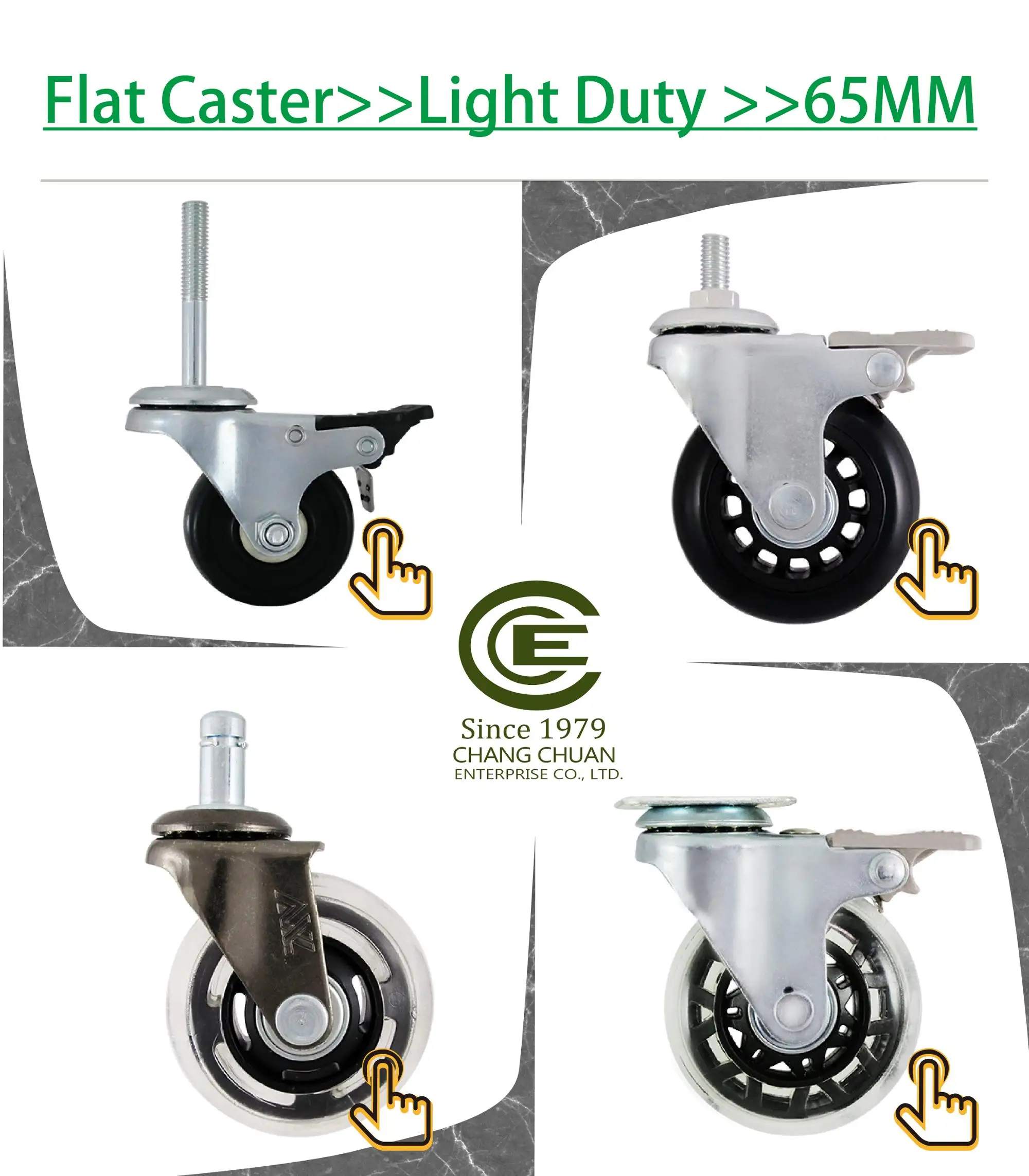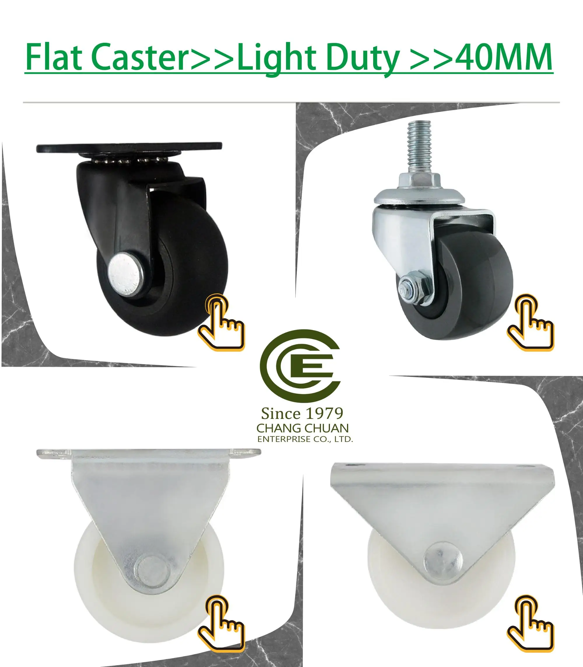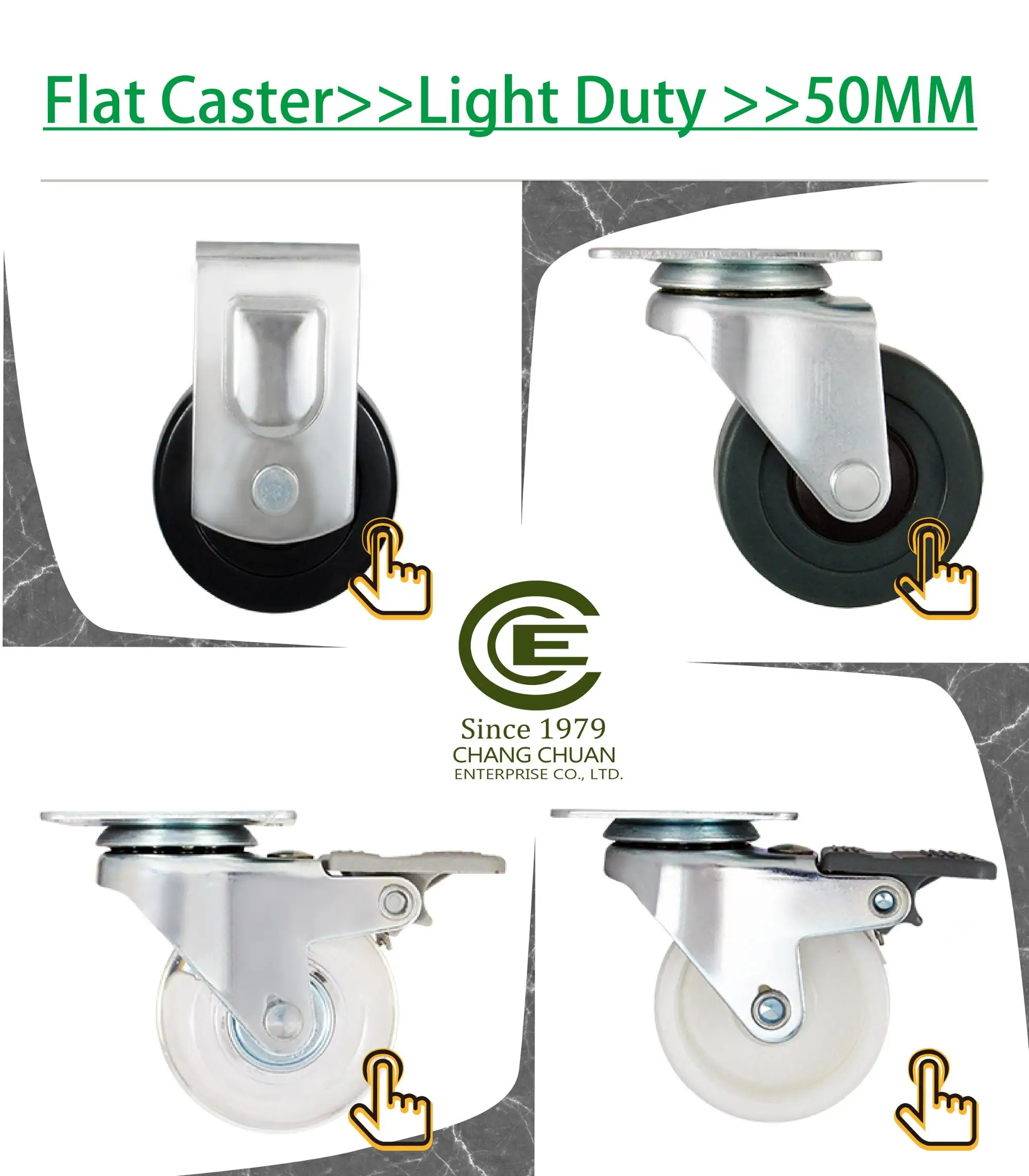| Product Name: | CCE Caster 2" Industrial Replacement Swivel Trolley Wheels"; | Duty Level: | Light Duty; |