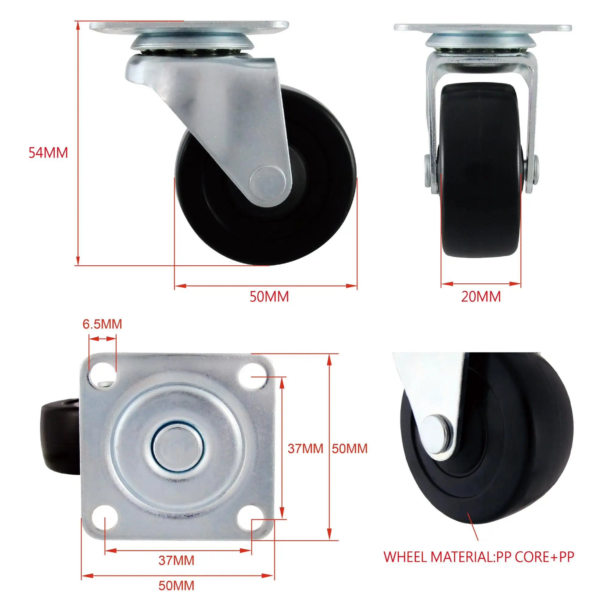 | Wheel Dia: | 2 INCH ( 50mm ); | Material: | Polypropylene; |
