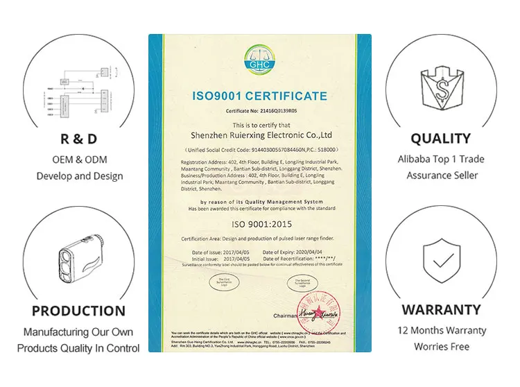 Our quality control is enforced strictly according to ISO9001 regulation. We are dedicated to make 100% eyesafe pulse laser range finder for the safety. In the meantime, we have upgraded our products’ circuit design to make low product power consumption at world level to it environmental friendly.