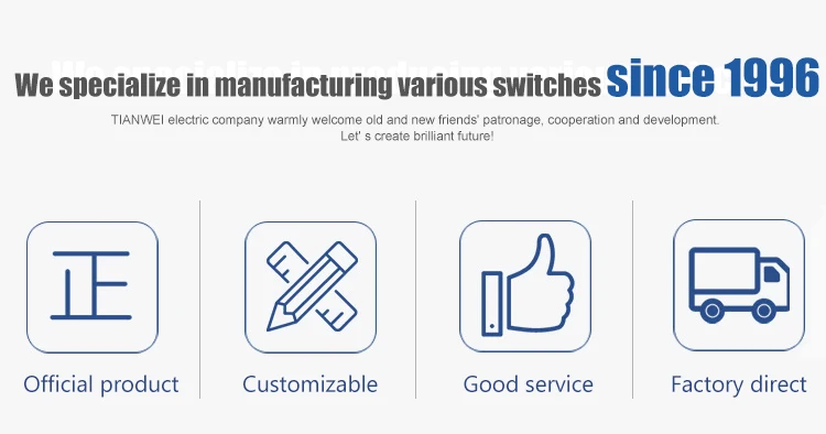 TIANWEI Electric is an irxlustry engaged insupporting production of vorious types of the welding machine switch.The mechanical equipment in auto parts industry,the universal switch for low-voltage apparatus.the combination switch.power switch,and the inverting switch for power-supply equipment and radio equipment.Which is also an enterprise specialized in R&D.manufacturing sales and service in whole.The company owns strong technical force.advanced production technology and equipment.perfect quality assurance system.os well as excellent customer service.