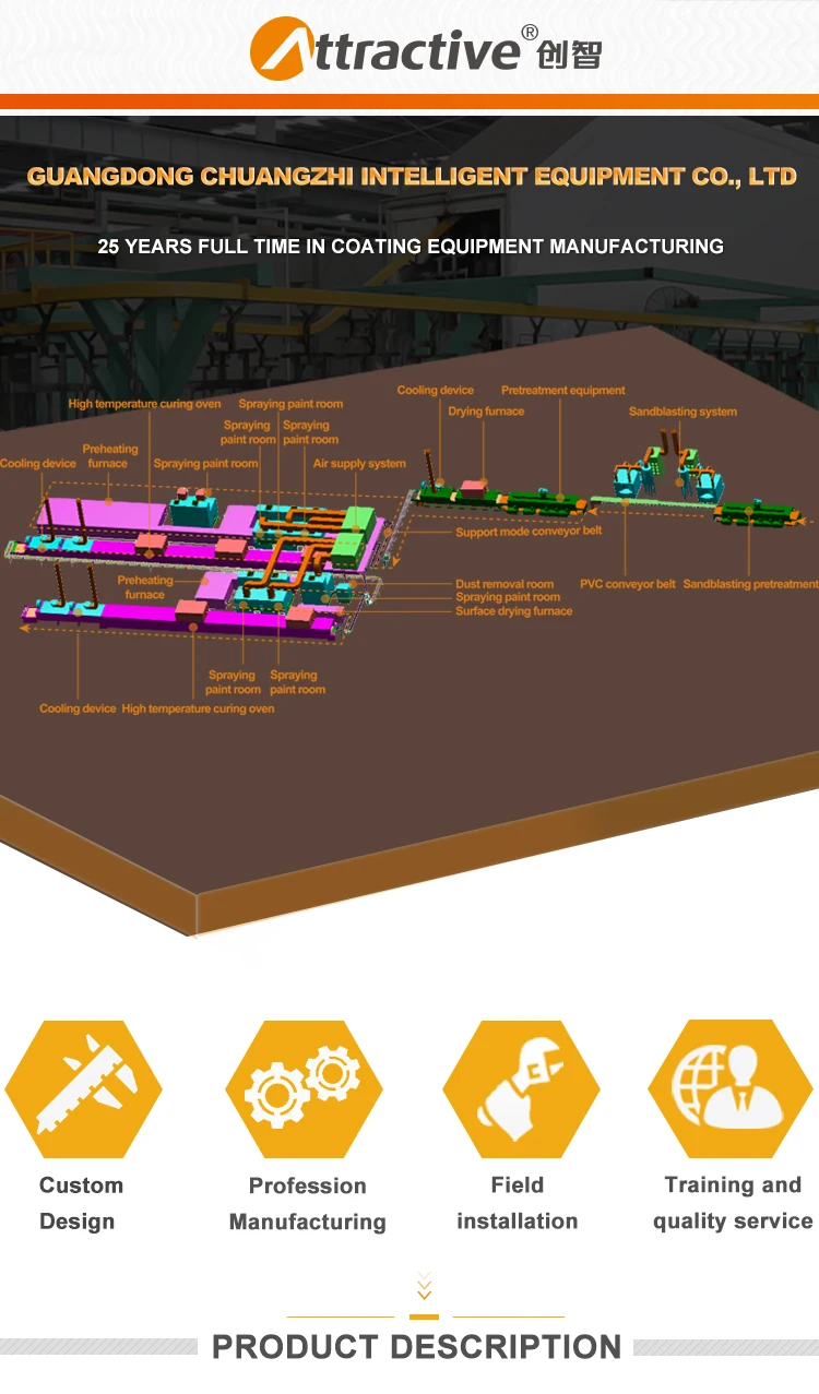 Guangdong Chuangzhi intelligent equipment co.,ltd is a intelligent production service provider with research & development , design ,manufacturing , install , commission and after service. Its own 25year experience in non-standard painting line solution supplier as well as provide various of coating and environmental protection equipment etc.