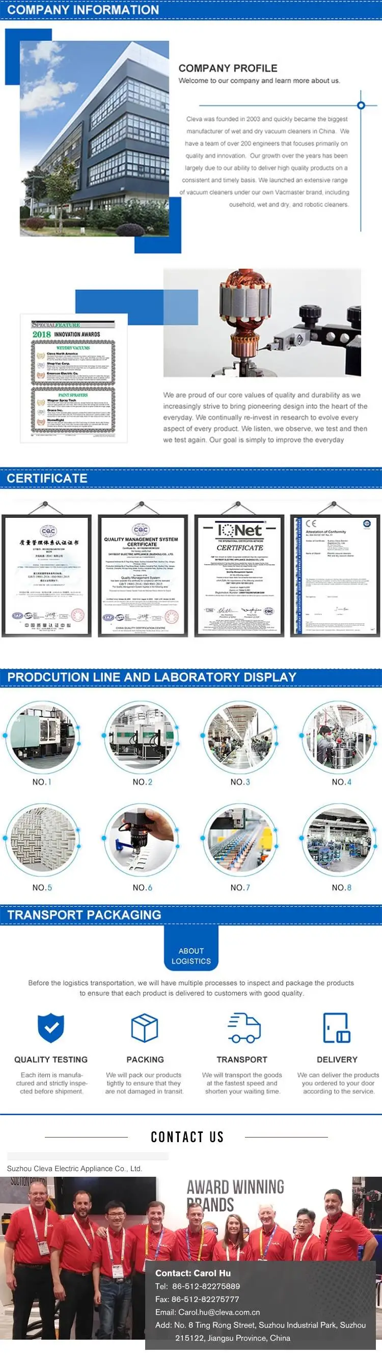 A1: We are the biggest wet & dry vacuum cleaner factory in China over 15 years. Our brand Vacmaster has been awarded as the most innovative brand in North America. Pls review our website for more product information http://www.cleva-na.com or www.cleva-uk.com