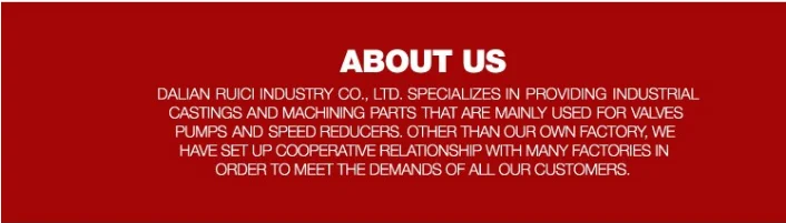 Ruici Industry(Dalian) Co.,Ltd was established in 2005 whose first workshop funded in 1984 named as Santang Foundry.We engage in many kinds of metal products business.Most of them are OEM and ODM products made upon customer's requirements. We mainly supply iron,carbon steel,stainless steel,copper,aluminum and zinc alloy casting,forginf,stamping and CNC machining.Areas of applicating include:1.Castings used in petrochemical,engineering &marine industries:such as impeller,pump,valve,floor drain,flange;2.Prts of mechanial transmission;3.Castings used in the kitchenware,food industry;4.parts used in the auto industry;5.parts of agriculture machinery etc. We have many sets of common lathe,CNC lathe,4 axis CNC machining center lathe,milling lathe,boring lathe,grinding lathe,Products weight range is from 0.003kg to 10000kg.We passed ISO9001:2015 quality system certification in 2005.The qualified product percent is controlled above 99%. Our clients include world market leaders,medium-sized enterprises and multinational companies.We provide a complete production and delivery service for all our clients.