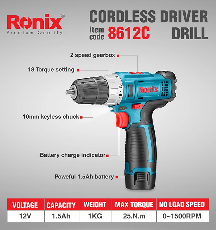 Ronix Best Price Model 8612C 12V/DC 1.5Ah Li-ion Battery Cordless 12v Drill Battery