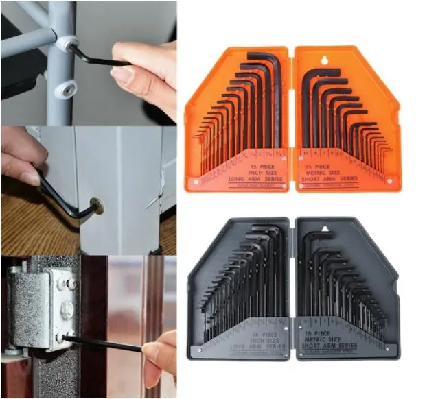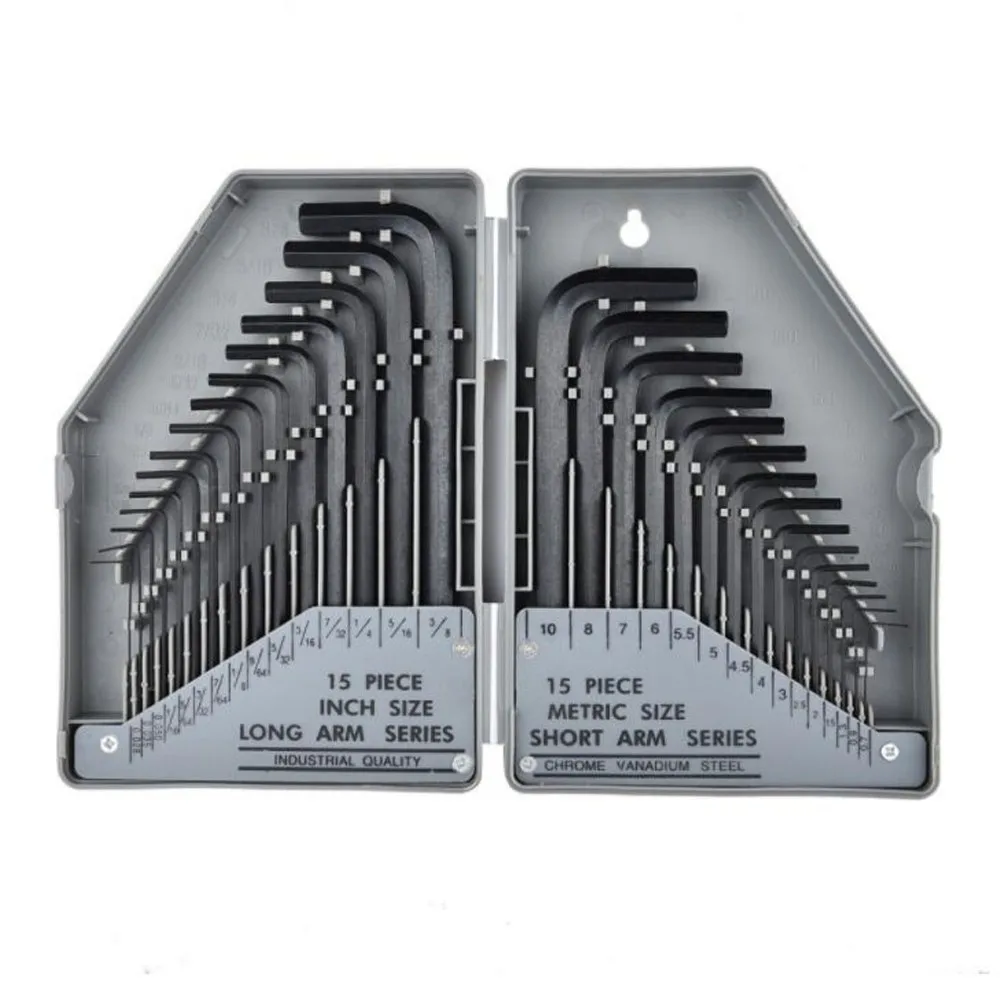 1 x Allen Wrench Set- METRIC & SAE (15 Pcs SAE Long Arm Allen Wrenches, 1 of Each Size; 15 Pcs Metric Short Arm Allen Wrenches, 1 of Each Size)