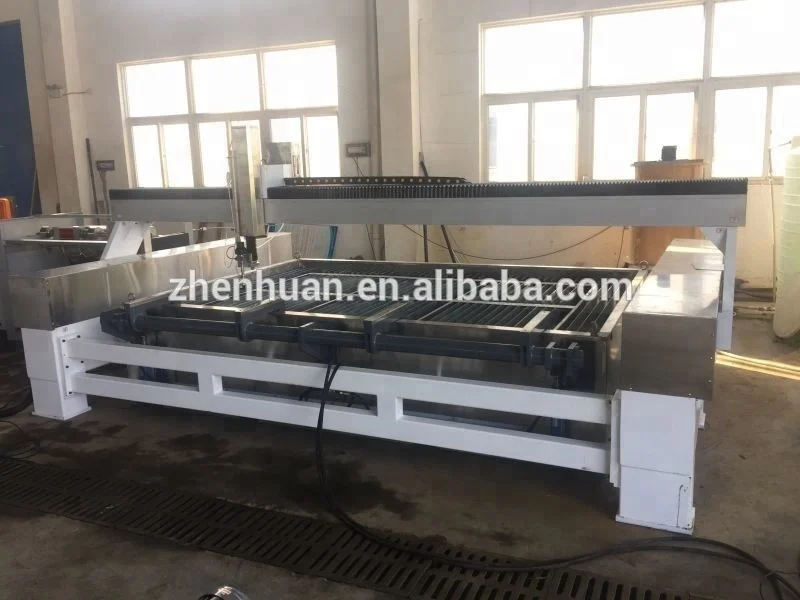 Water jet cutting machine compose with superhigh pressure water pump, CNC control system, cutting worktable and sand auto feeding system. Owing to water jet cutting machine is cold cutting, not use noxious and dangerous gas, capacity of big thickness and high precision, it windly use for cut metal, stone, glass, plastic, rubber and wood etc.