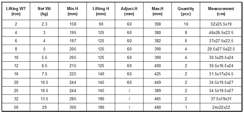| Lifting WT: | 2T; | Max.height: | 308mm; |