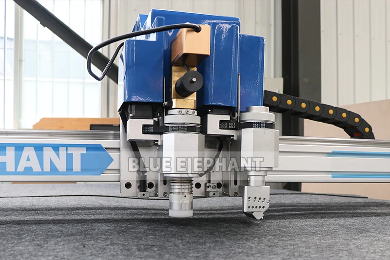 2) Double tool head, one head fixed, another one 45 degree rotation, cutting materials more flexibly.