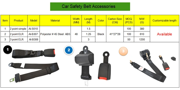 | Product name: | simple 2 point car safety seat belt; | Material: | Polyester; |