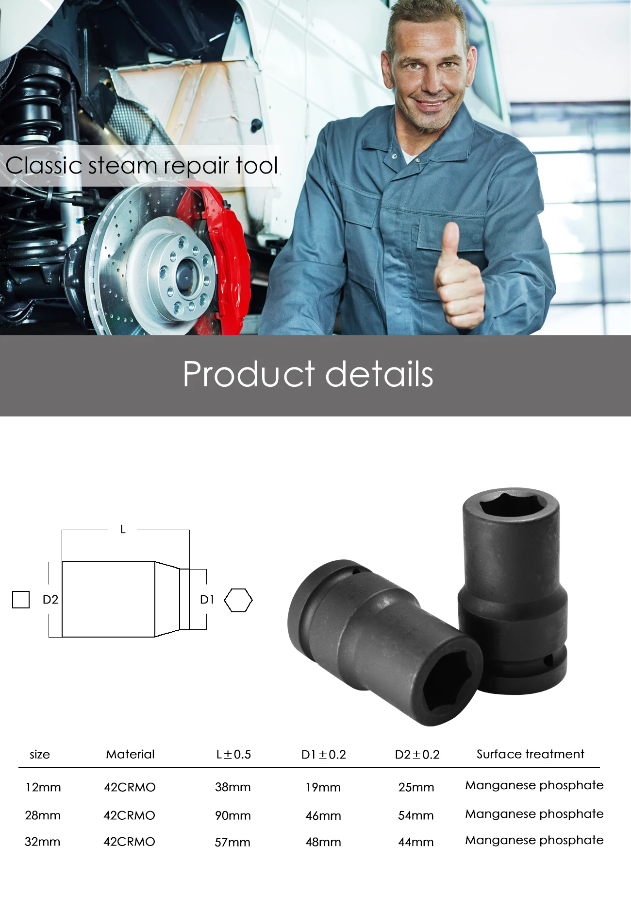 Drive Size:1/2"&3/4"&1", normal and deep