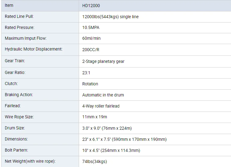 | Rated line pull: | 12000Lbs (5443kgs) single line; | Application: | Auto; |