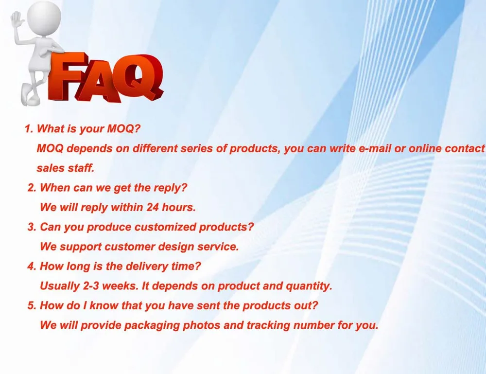 1. Reply your enquiry in 24 working hours.