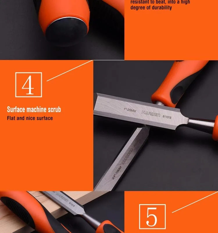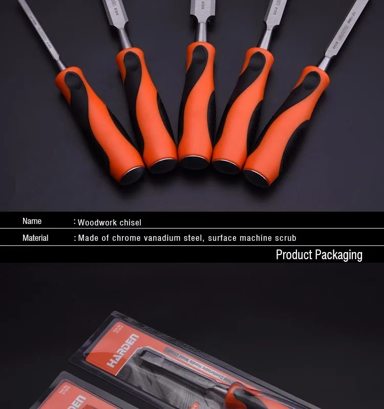 | Keyword: | Chisel Set; | Packaging Detail: | CRV Double Color Durable Woodwork Wood Carving Chisel Set Packing:Sliding Card; |