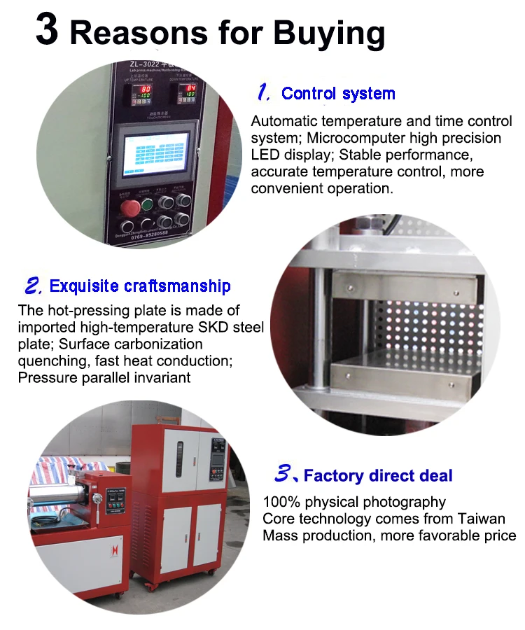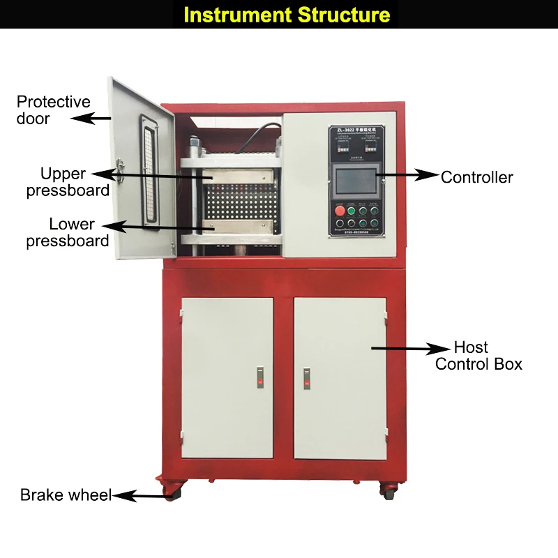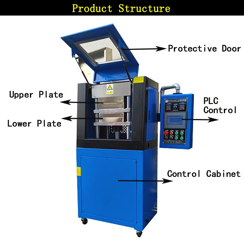 The material is placed in the casting mold and clamped between the electric-heating flat plates to apply pressure and temperature,make the material shaping,testing and serving as the basis for the ingredient of mass production.