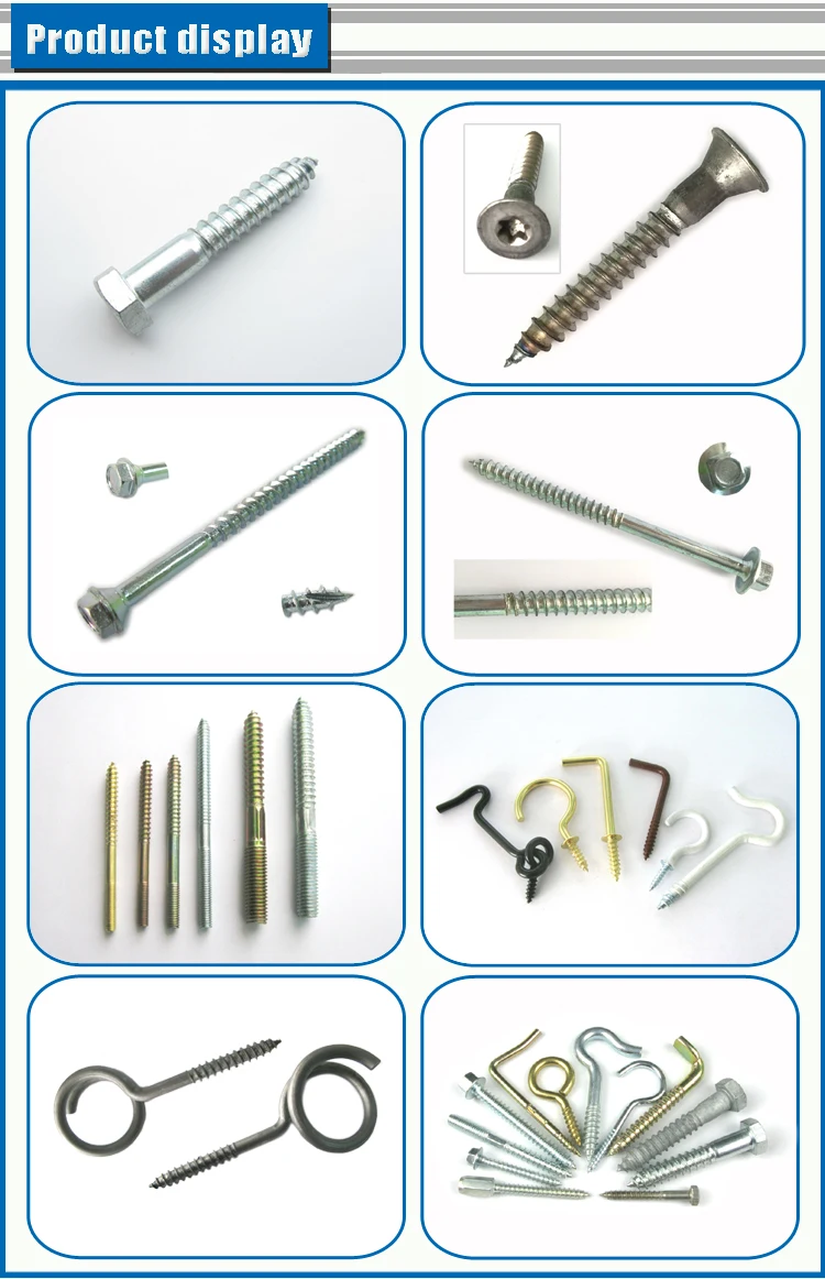 Product Features: Standard:ASME B18.6.1,DIN571, DIN95, DIN96, DIM97, DIN7997 Size: #4-#14 / 2.5-6.3mm, Length:10-180 mm Material: low carbon steel, SS304, SS316 Drive type: Phil, slotted,etc Head type: hex , flat CSK, raised CSK, pan, round, Oval Finish: zinc plated(clear/bule/yellow)+wax,black/grey phosphate,nickel, ruspet | |