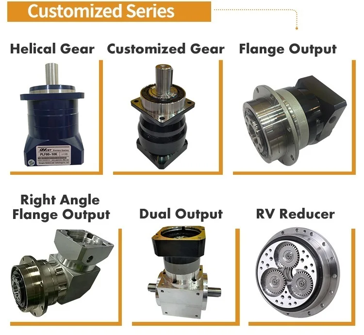 To meet the different precision and usage occasions requirements, we supply two kinds of 2 speed planetary gearbox: spur planetary gear reducer, bevel helical planetary reducer gearbox. And also RV cycloidal pin wheel reducer. They're widely used for stepper motor, servo motor and other high precision industrial occasions, which need to reduce the speed or enlarge the torqure, such as robotics! About the frame size, our small planetary gearbox external diameter can be 40mm, the biggest one can be 242mm. And the gear ratio ranges from 3:1 to 1000:1. Please check the following specifications details:
